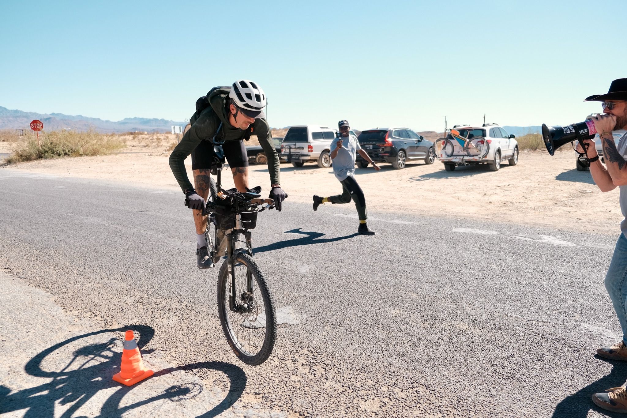 Despite the brutality of the route, the racing was electric and equally unrelenting. A small but mighty group battled back and forth across the miles, creating genuine, edge-of-your-seat dot-watching. It wasn’t clear who would take the win until the final stretch, and by then everyone—riders, spectators, and the desert itself—had given everything they had.